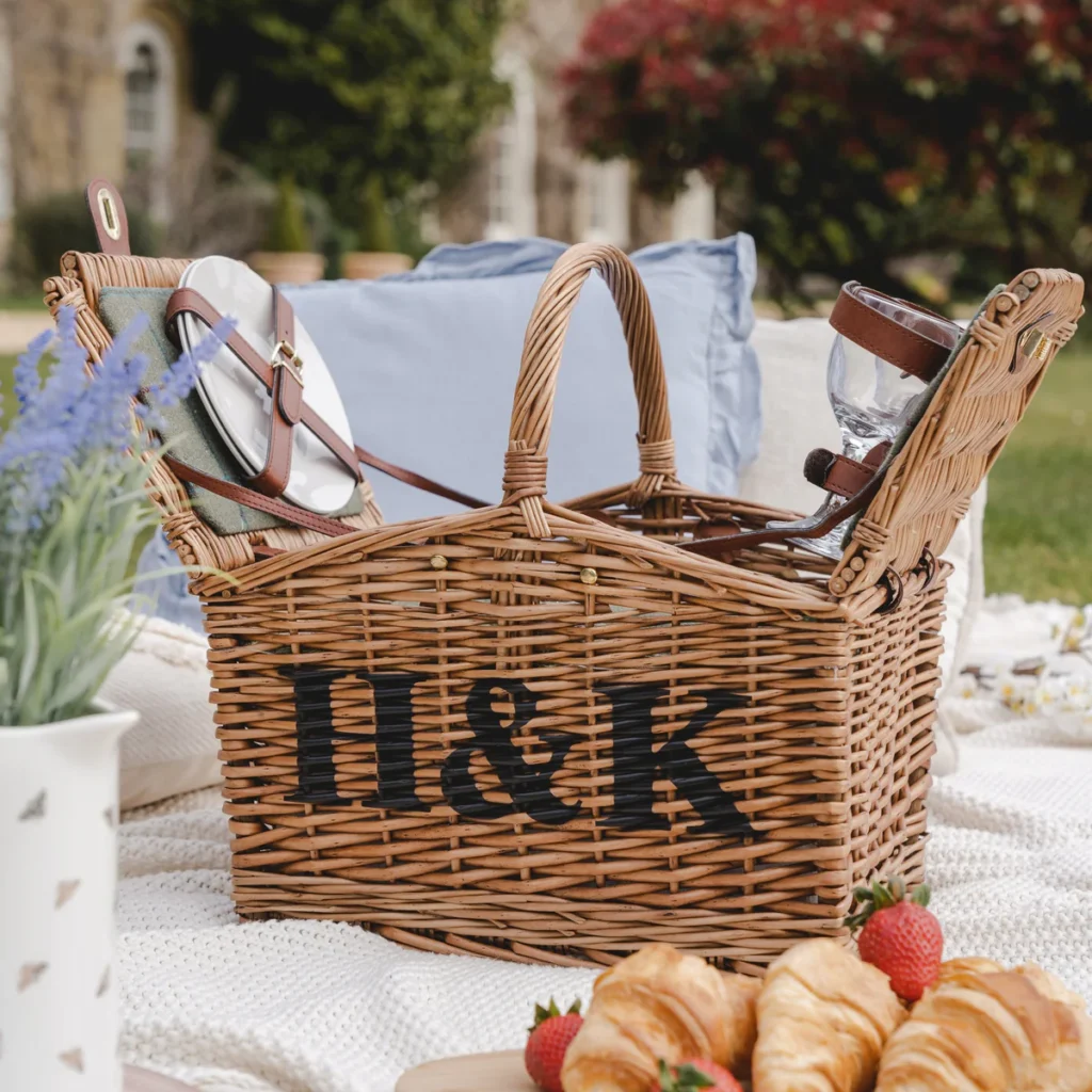 What makes this hamper truly special is the option to personalise it with up to three initials on the front, turning it into a unique gift for weddings, anniversaries, birthdays or Christmas. The refined double-lid design and elegant detailing make it a statement piece for picnics, garden parties, and countryside outings.